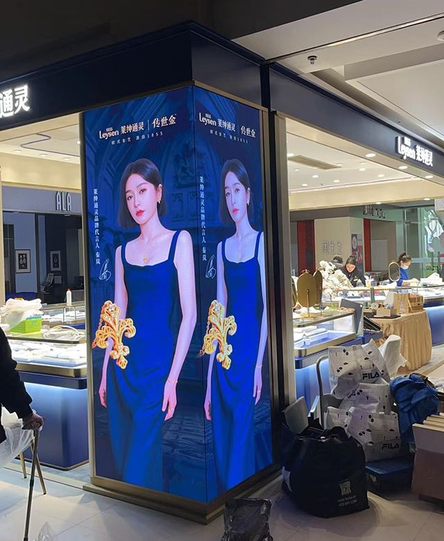 萊紳通靈是知名珠寶品牌,目前已在北京、上海、江蘇等20多個省市自治區(qū)擁有700多家專營店。萊紳通靈揚州店的室內(nèi)LED顯示屏由上海智彩電子科技有限公司提供定制安裝。